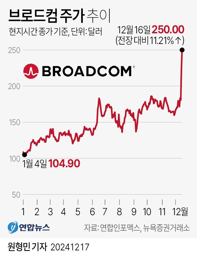 [4] 한국경제 - 매출 시장 예상치 밑돌았는데…美브로드컴 주가 왜 급등했나 (https://www.hankyung.com/article/2024121462107)